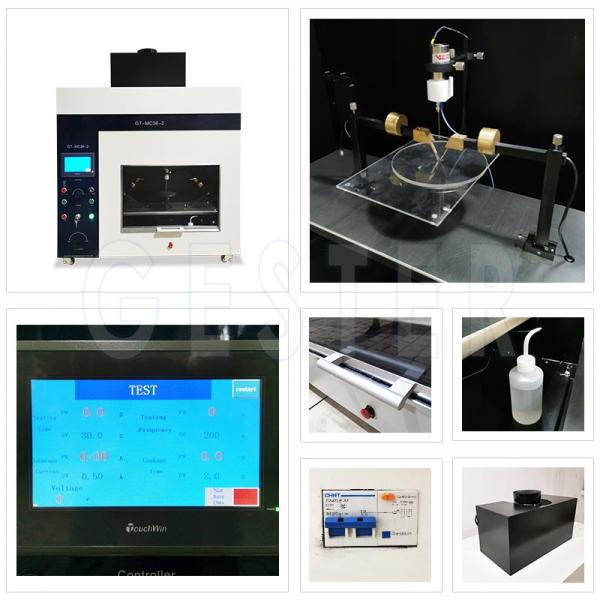 Principle: On a solid surface of insulating material, between the required size (2mm × 5mm) platinum electrode, a voltage is applied. At the same time, timed (30s), set height (35mm) and dropping a predetermined volume of contaminated liquid droplets (0.1% NH 4 CL ) to evaluate the endurance capacity of the surface of solid insulating materials under the combined effects of electric and contaminated media, accordingly, its comparative tracking index (CT1) and resistance to tracking index (PT1) is tested. Suitable for the research, production and quality control for lighting, low voltage electrical appliances, household appliances, electrical machines, motors, power tools, electronic equipment, electrical instruments, information technology equipment, and also suitable for insulation, plastic, electrical connections, accessories industry. |