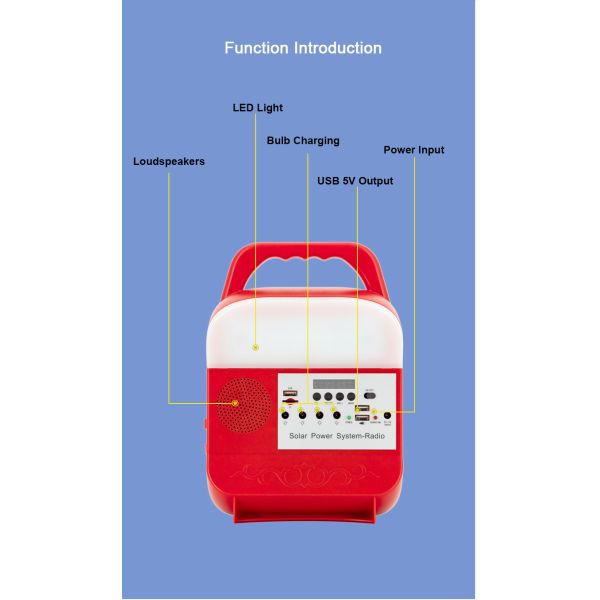 This small system portable camping lamp mainly adopts solar energy and LED technology. It not only has a beautiful appearance and five colors to choose from, but also is easy to use. It is especially suitable for daily life, outing and accidents.