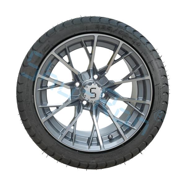 China Wholesale 14'' Gunmetal Finished Alloy Golf Cart Wheels, ATV UTV 225/30-14 Street Tubeless Tires with Rims wholesale