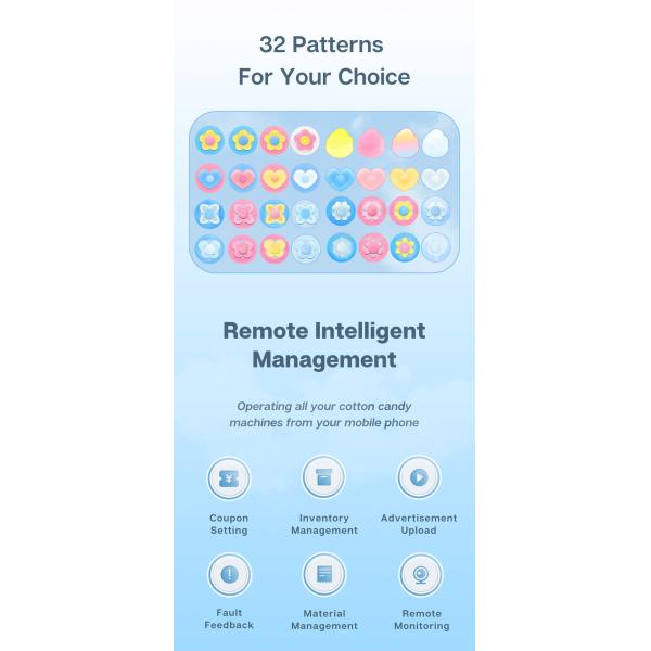Micron Street Food Business Cotton Candy Vending Machine With 32 Fruit Flavor And Flower Shape