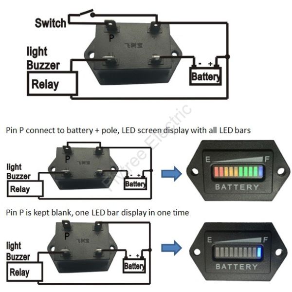 Hexagon Battery discharge status Indicator - battery gauge with single LED line screen showing battery charge status graph. It suits for lead acid battery, SAL battery and li-on battery in electric vehicle, boat, sweeper and forklift.