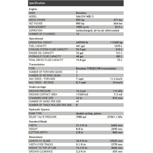 KOMATSU D475A-5 Bulldozer Specification